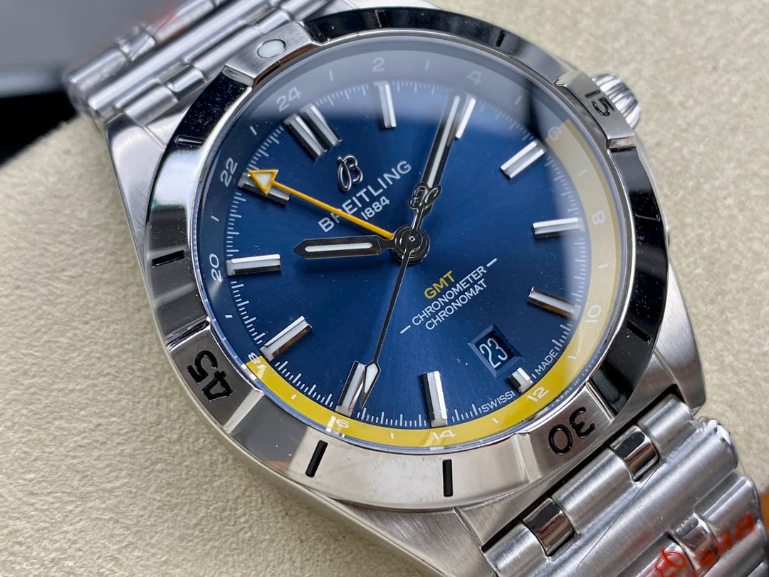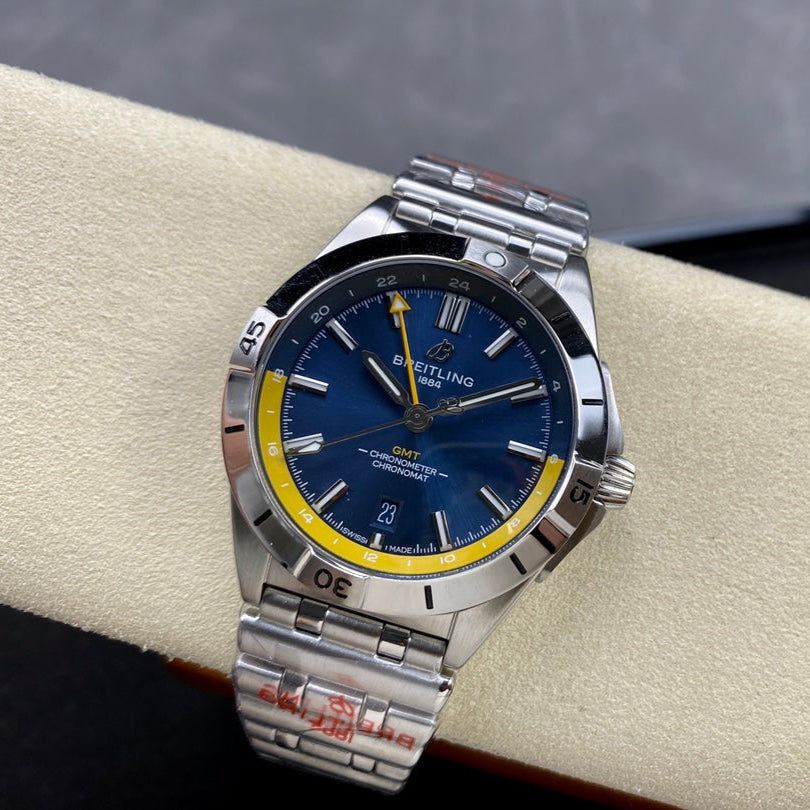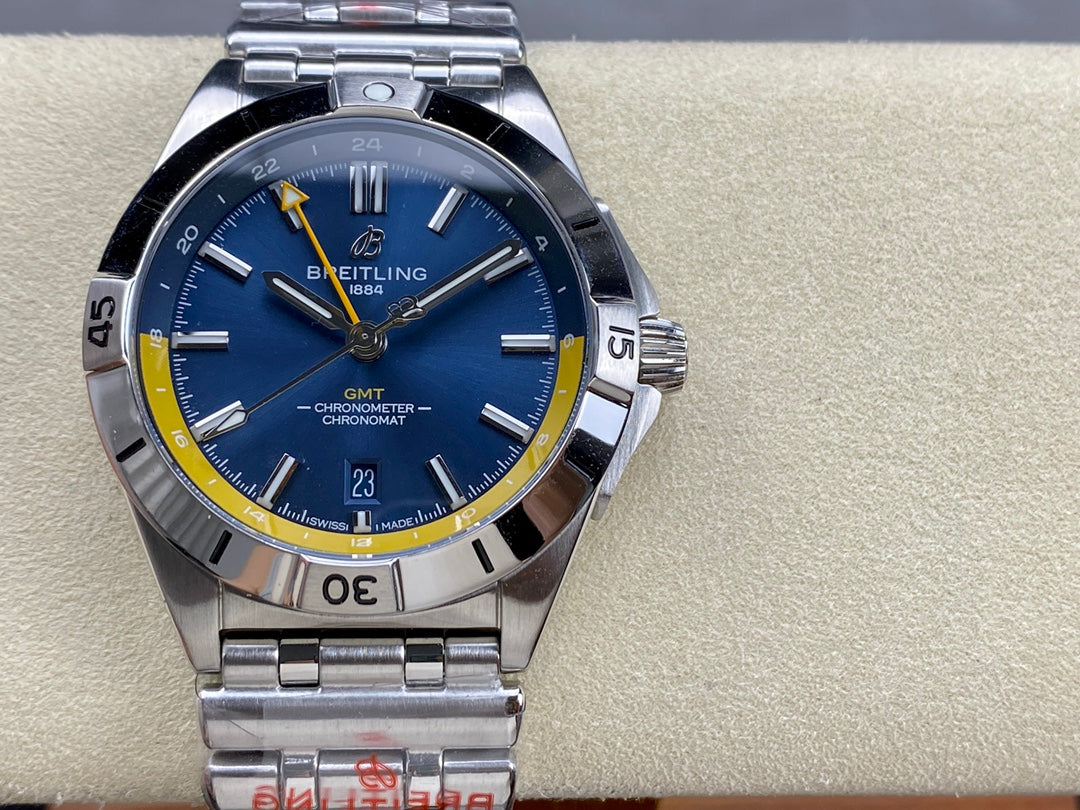 Chronomat GMT 40 SS BLS 1:1 Best Edition Deep Blue/Yellow Dial on SS Bracelet A2836