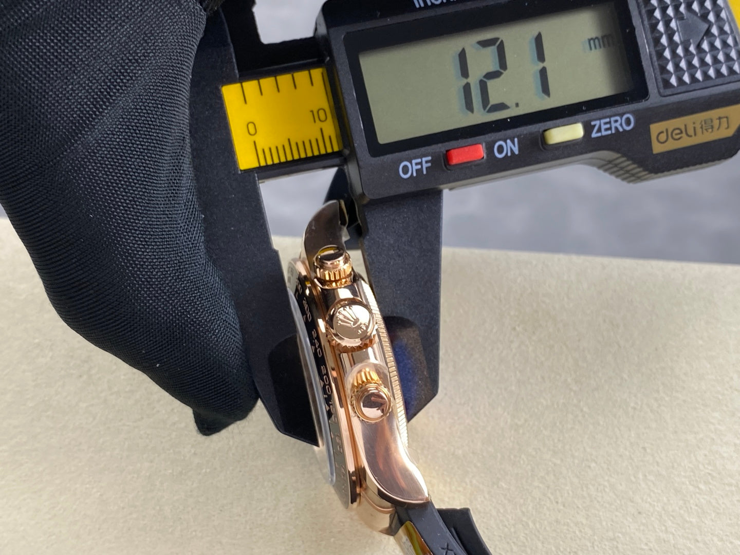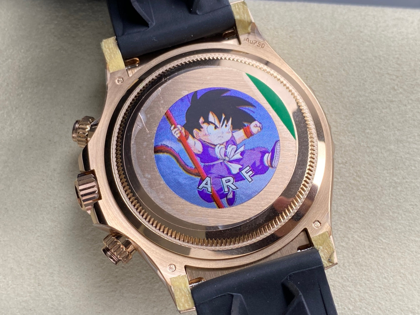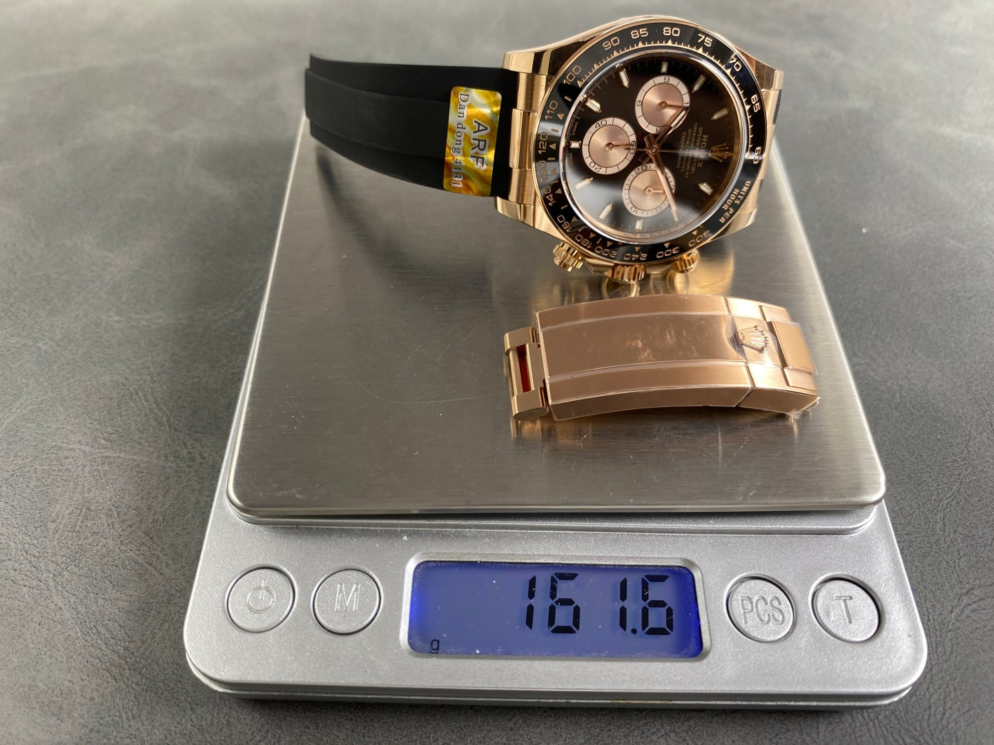 | Case | 18k rose gold plated 1:1 replicated solid 904L stainless steel case, Cu-W metal to increase watch weight to match the genuine gold watch weight |