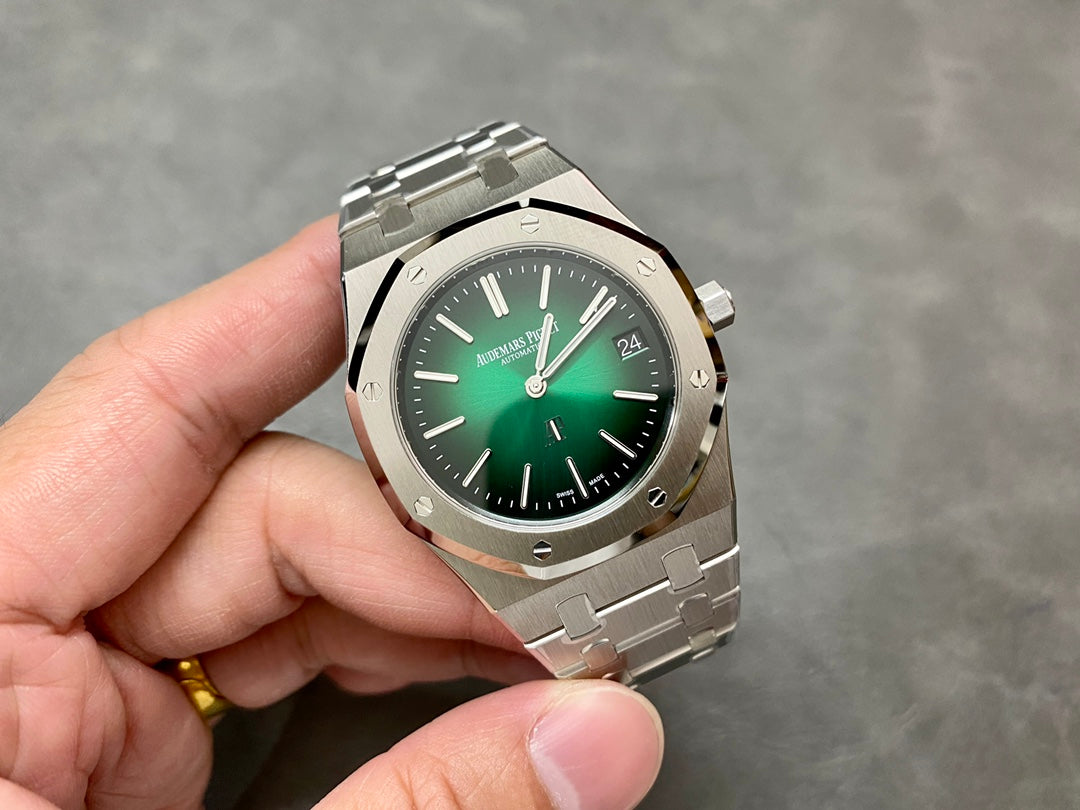 Royal Oak 39mm 16202 "50th Anniversary" SS ZF 1:1 Best Edition Green Textured Dial on SS Bracelet A7121