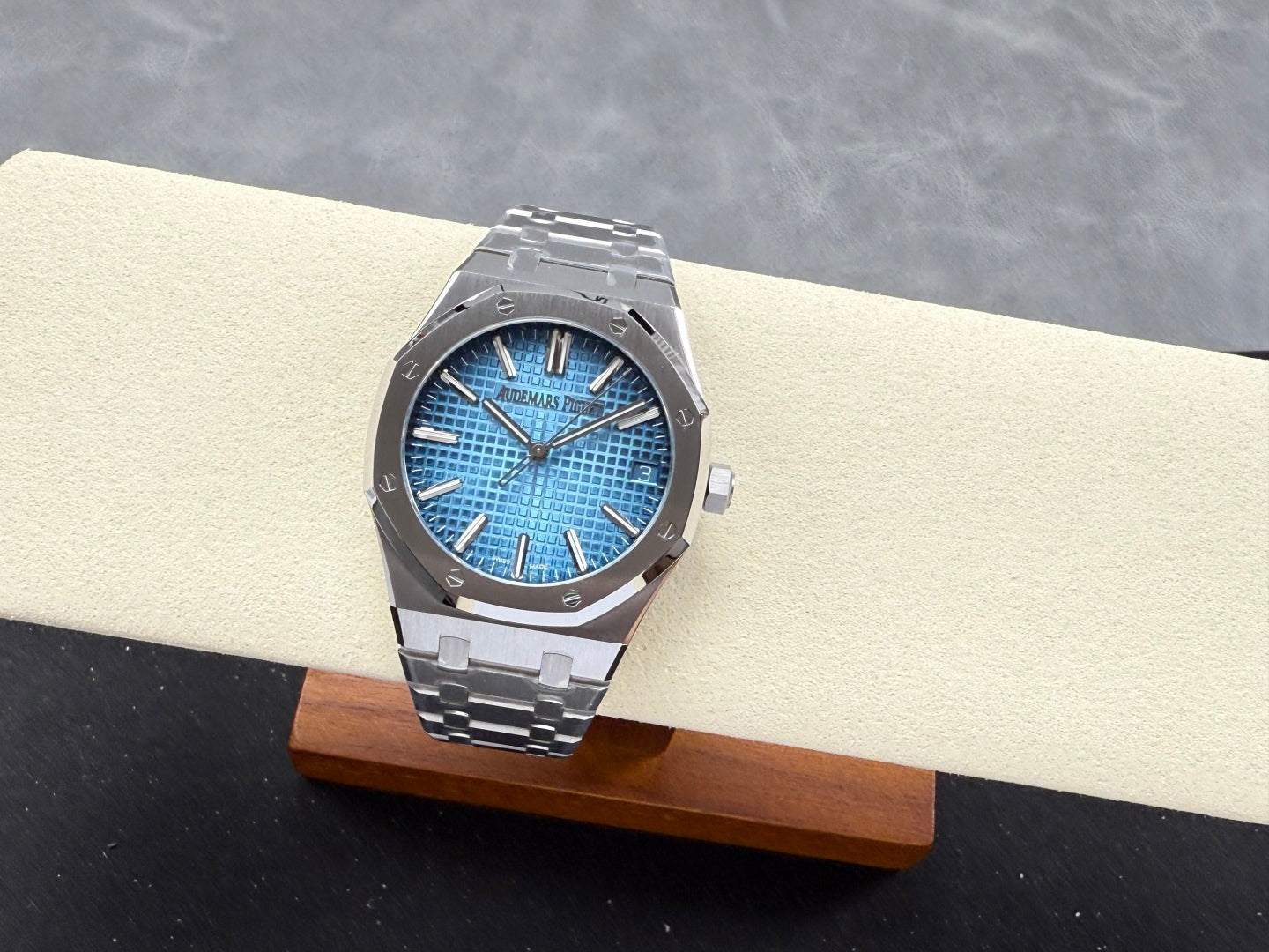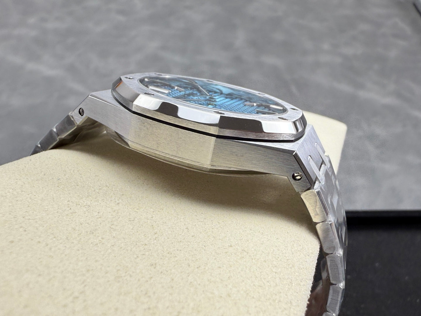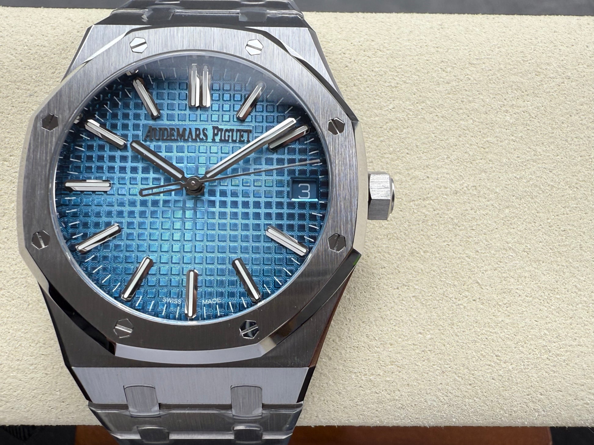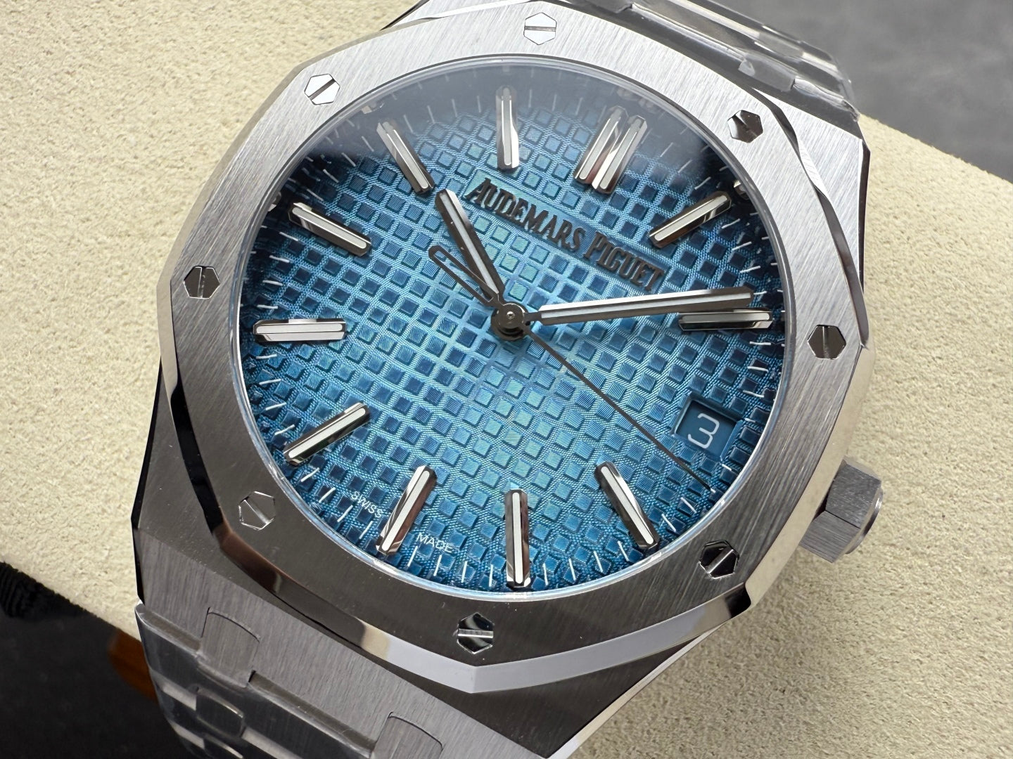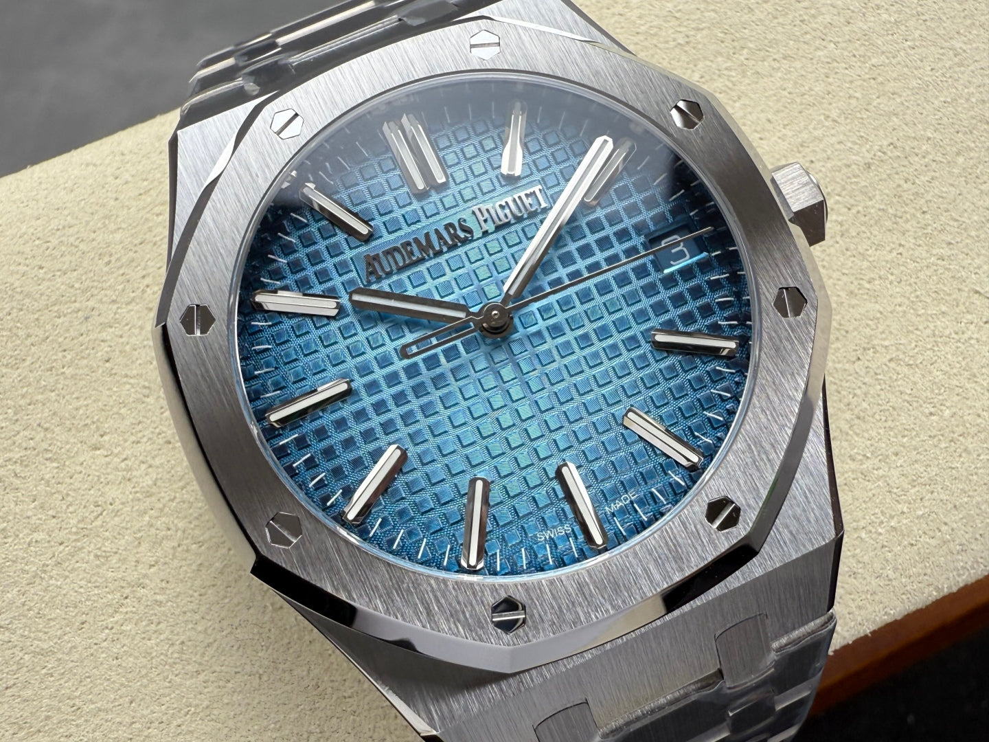 Royal Oak 41mm 15510BC SS ZF 1:1 Best Edition Ice Blue Textured Dial on SS Bracelet SA4302 Super Clone V3
