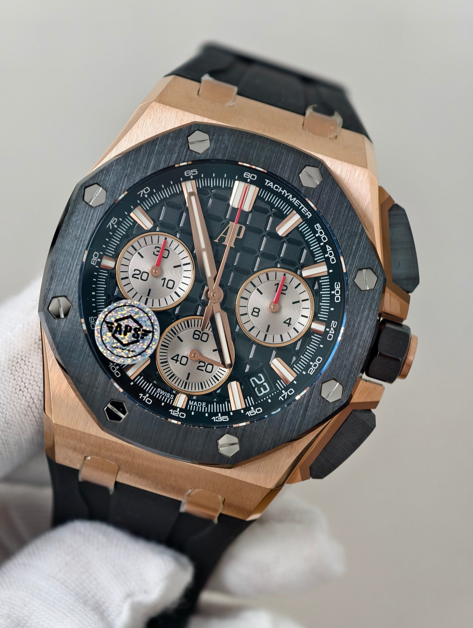| Movement | Asian super clone AP cal. 4401 movement, the best asian AP movement at the moment, real flyback function, 1:1 made from genuine movement |