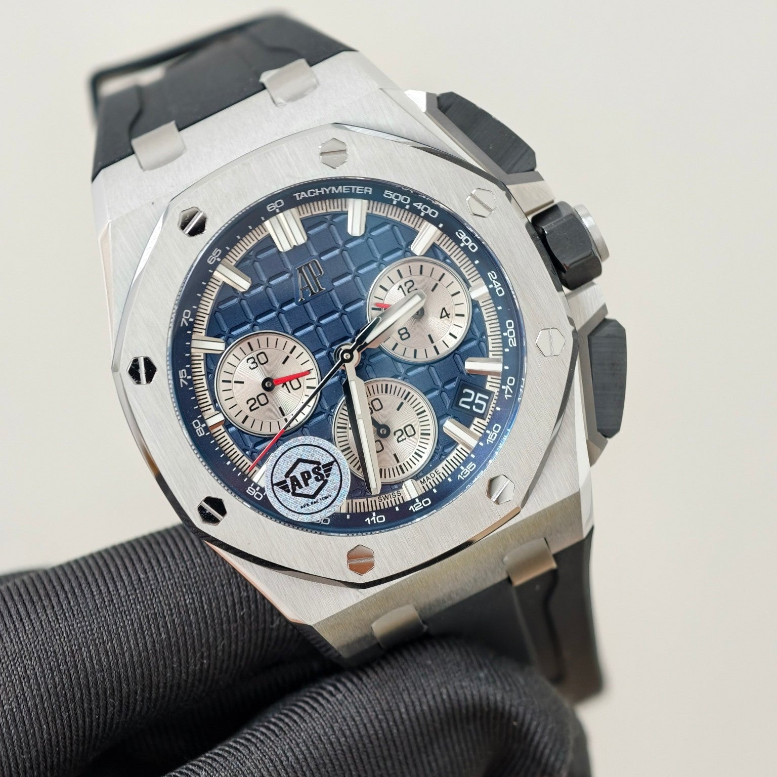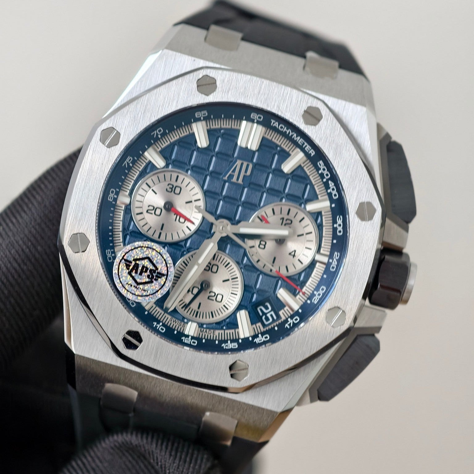 Royal Oak Offshore 26420 SS APSF 1:1 Best Edition Blue/Silver Dial on Black Rubber Strap SA4401 Super Clone
