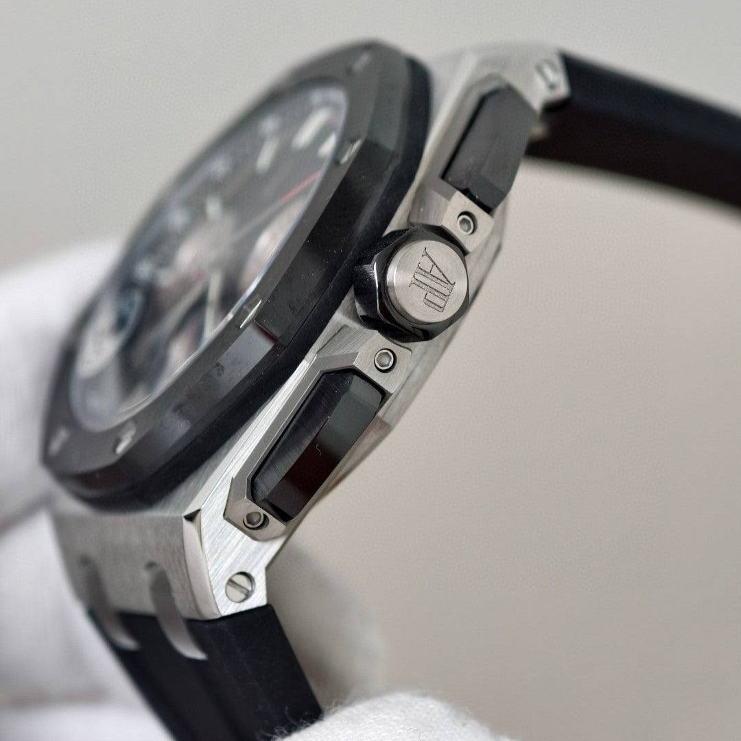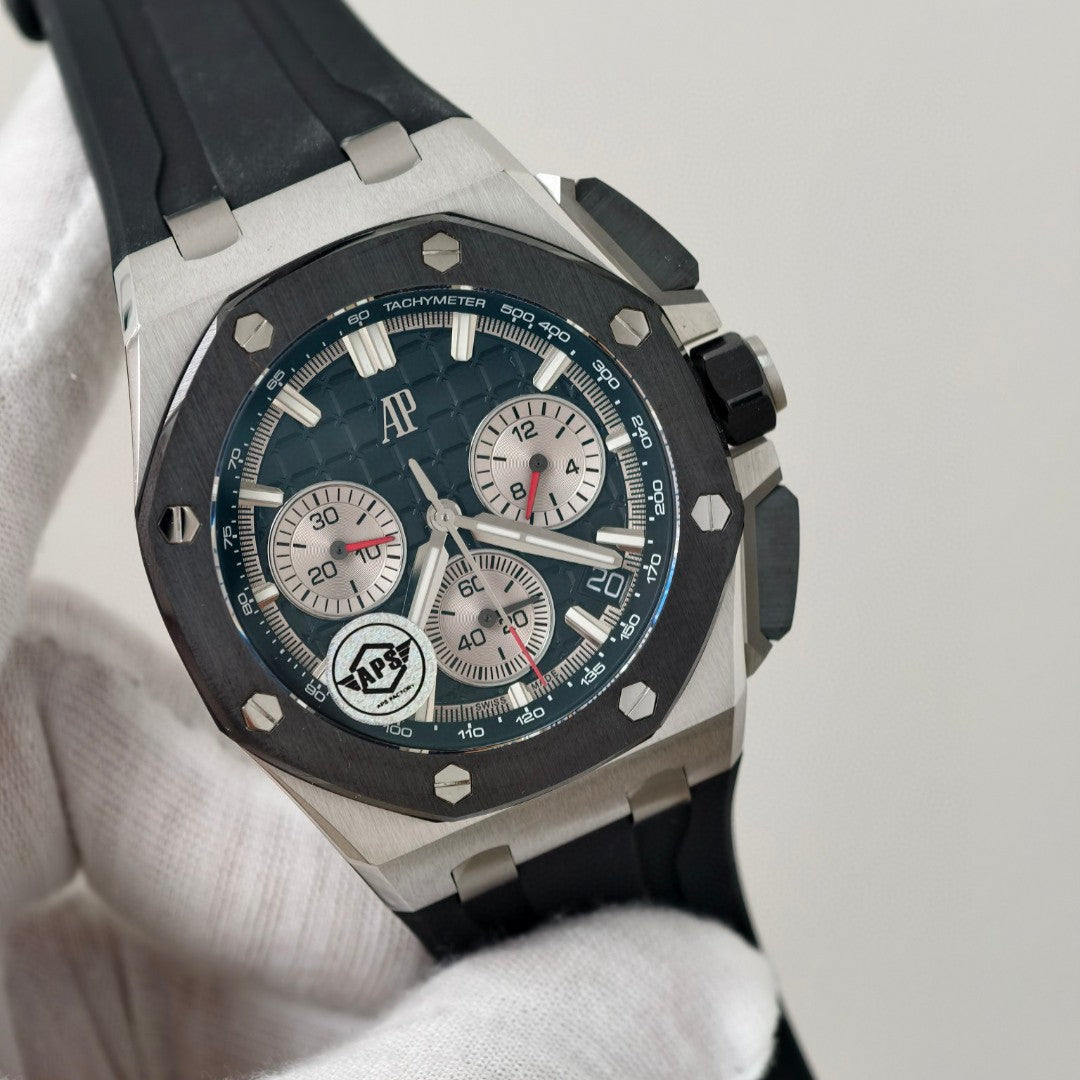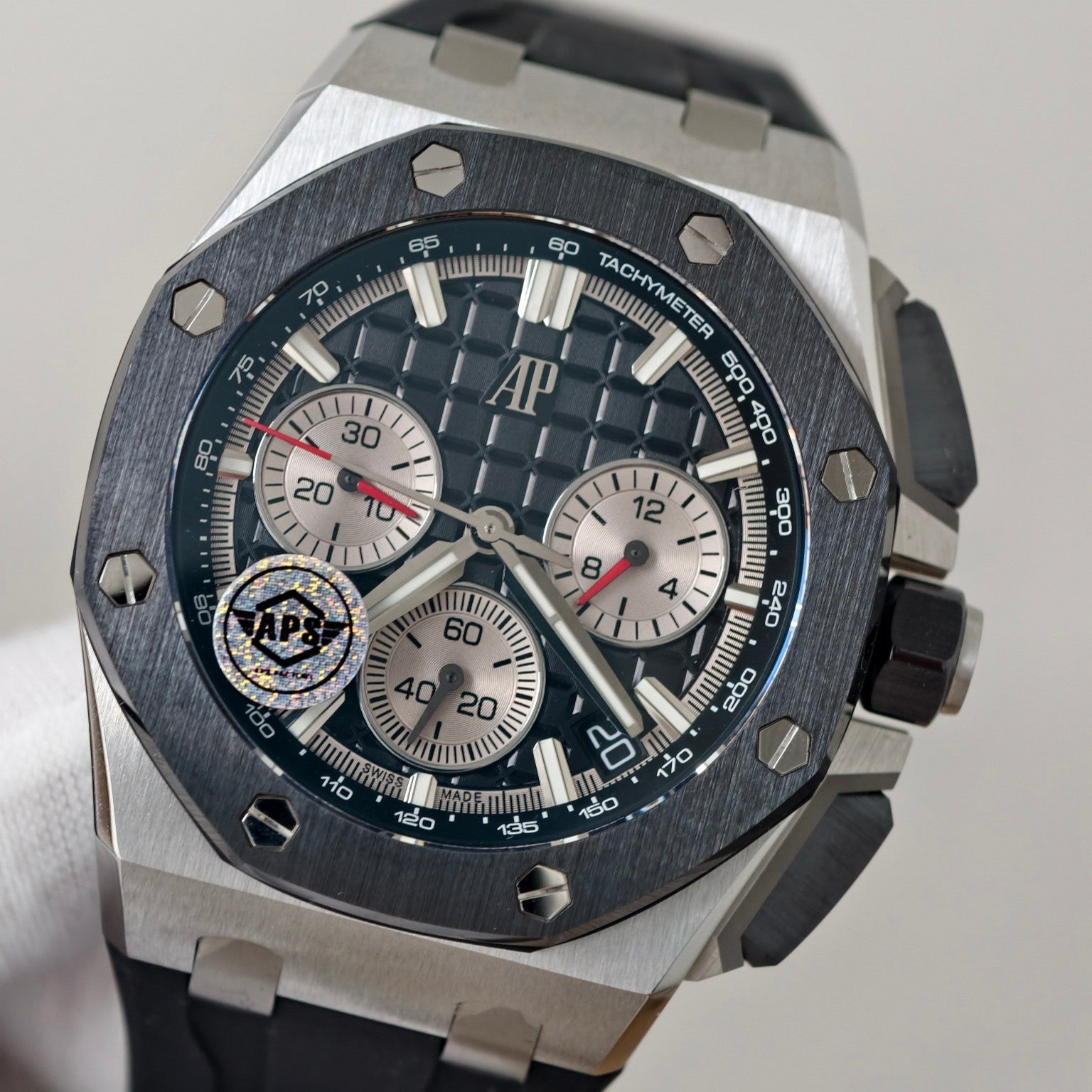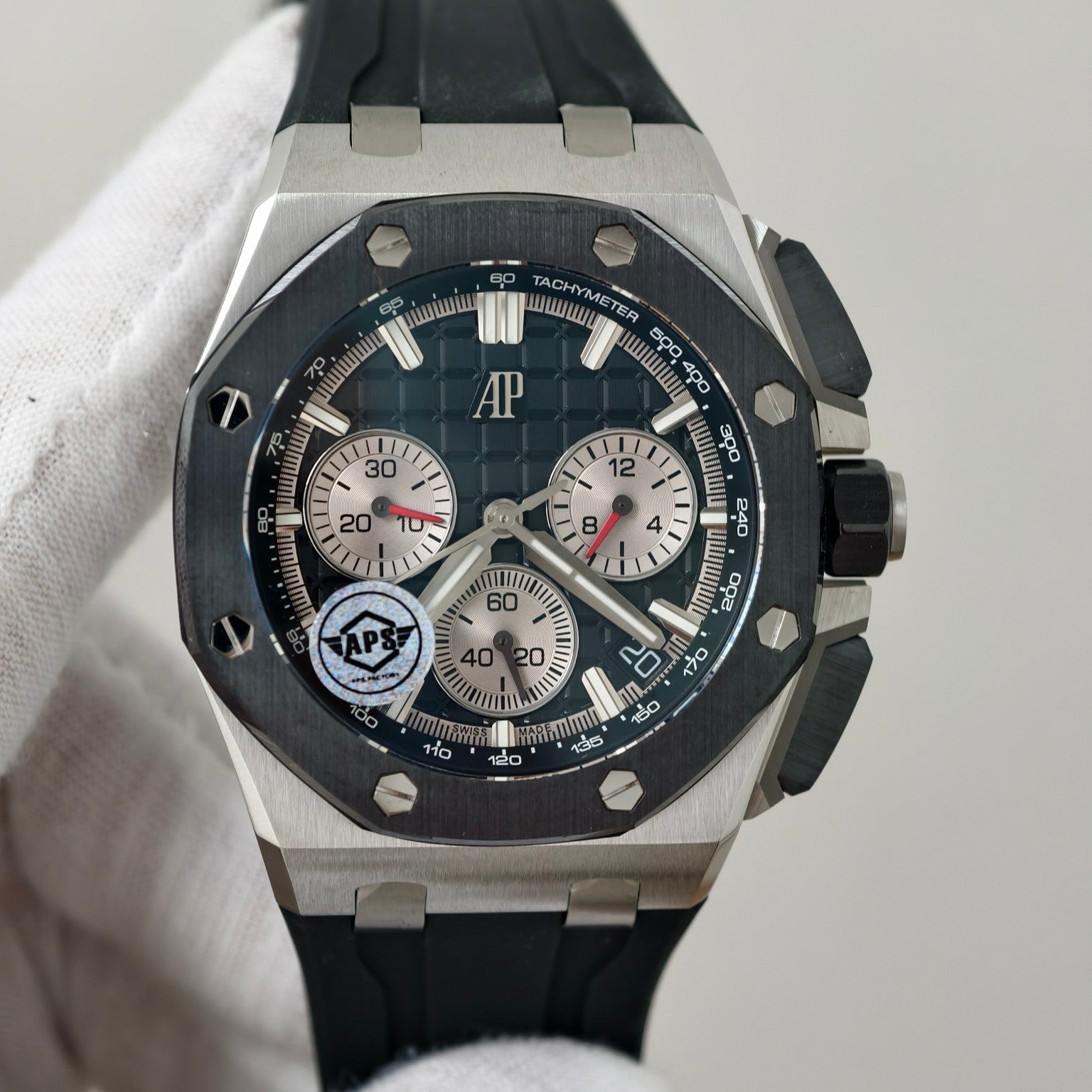 Royal Oak Offshore 26420 SS Ceramic Bezel APSF 1:1 Best Edition Black/Silver Dial on Black Rubber Strap SA4401 Super Clone