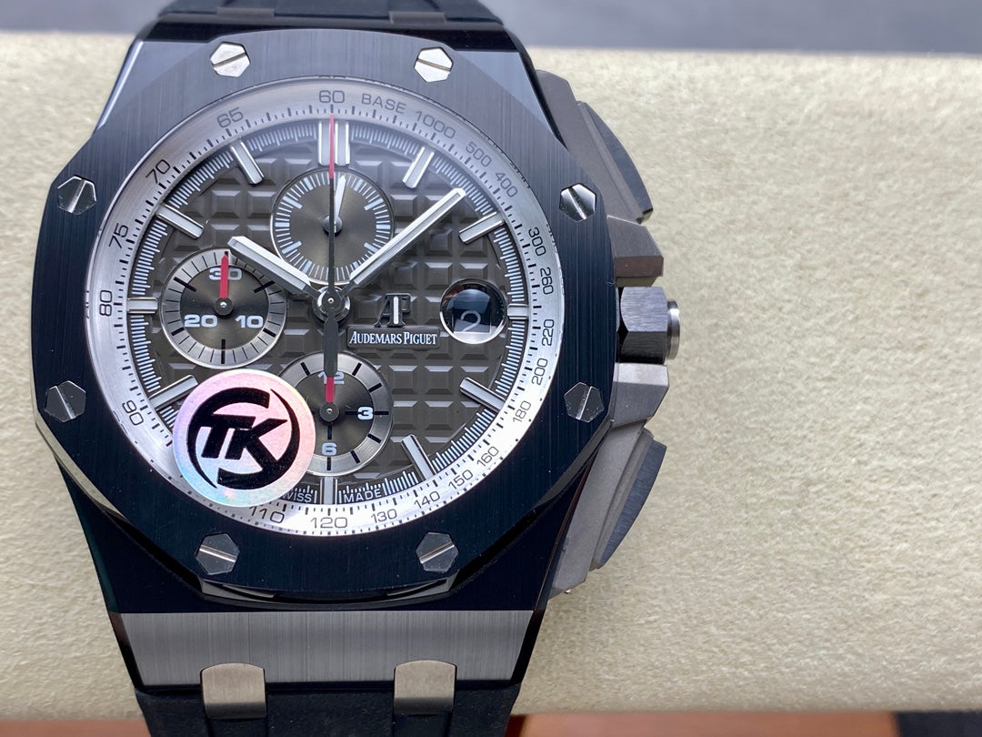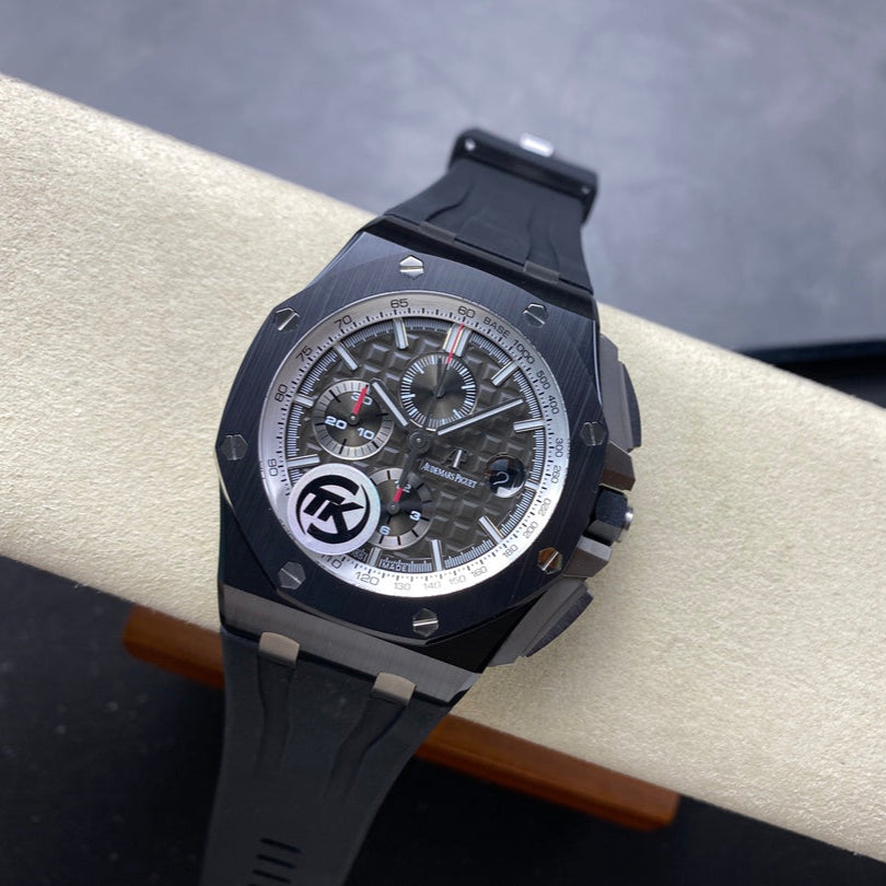 Royal Oak Offshore 44mm Black Ceramic SS TKF 1:1 Best Edition Gray Dial on Black Rubber Strap A3126