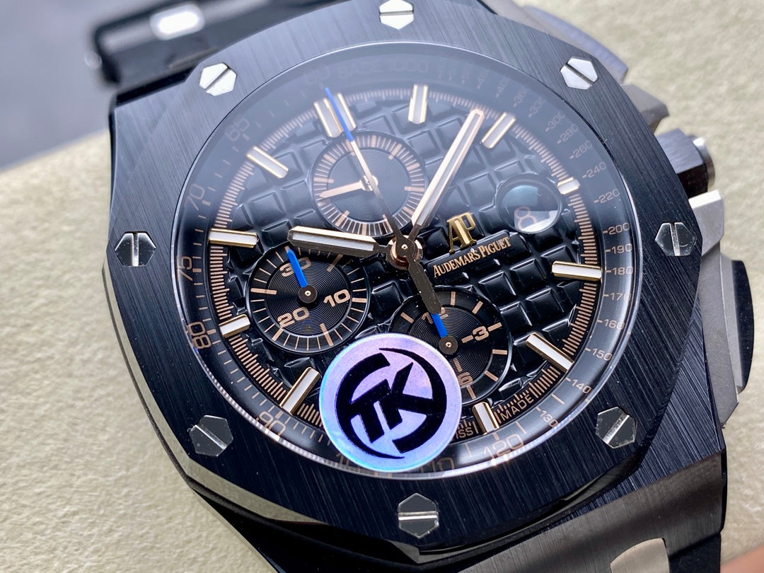 Royal Oak Offshore 44mm Black Ceramic TKF 1:1 Best Edition Black Dial on Black Rubber Strap A3126