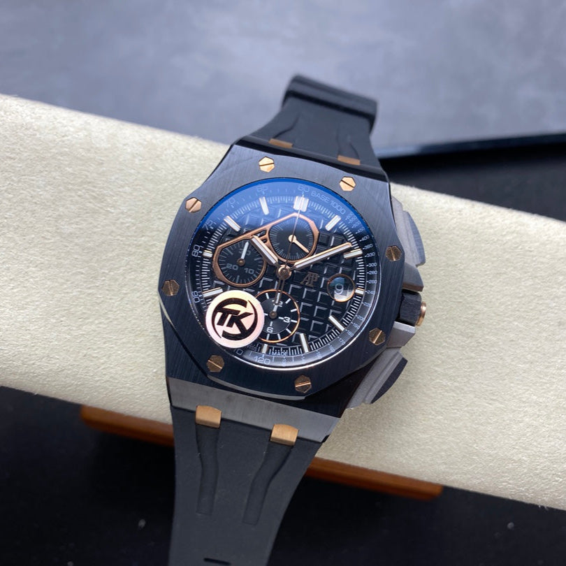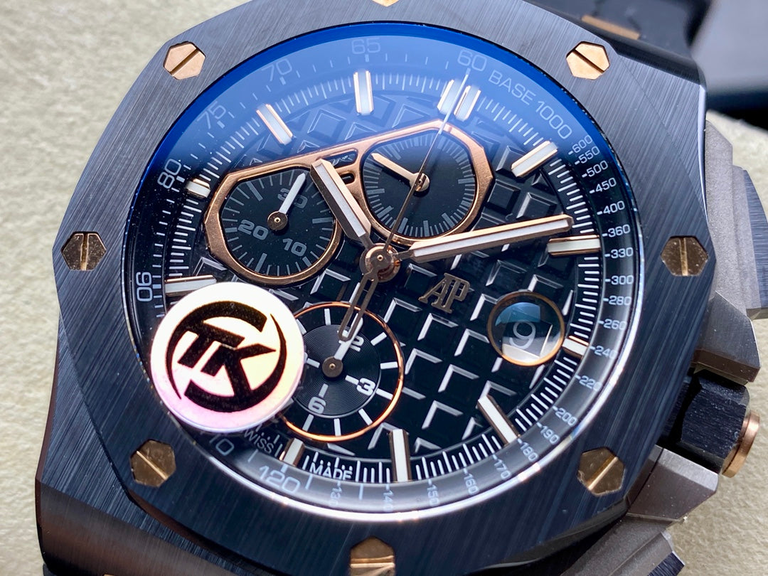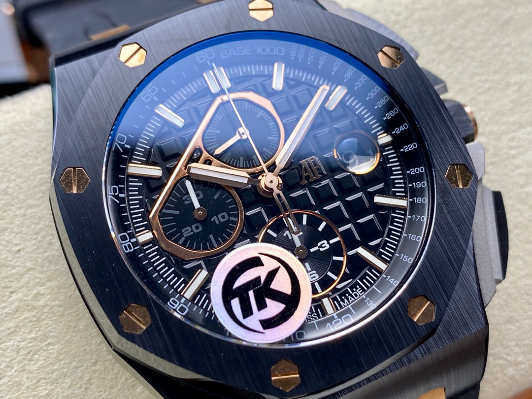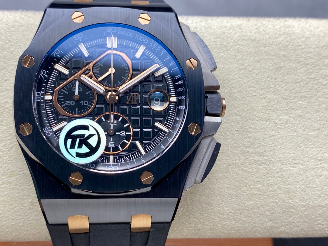 Royal Oak Offshore 44mm Black Ceramic TKF 1:1 Best Edition Black/RG Dial on Black Rubber Strap A3126