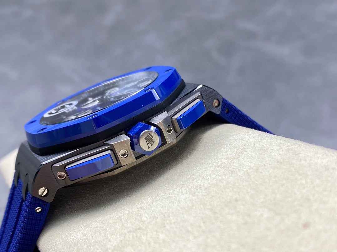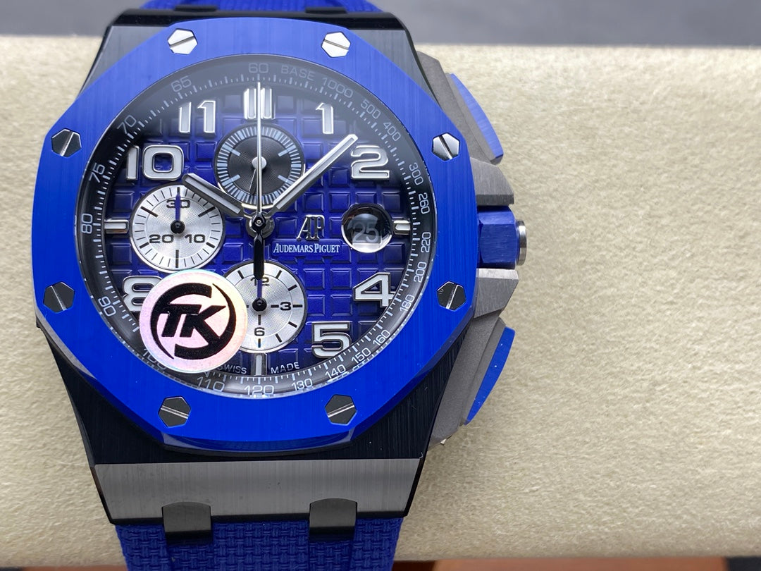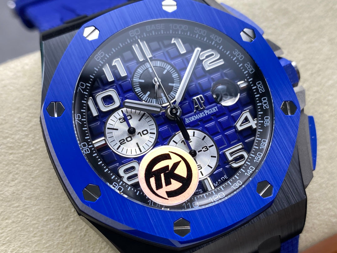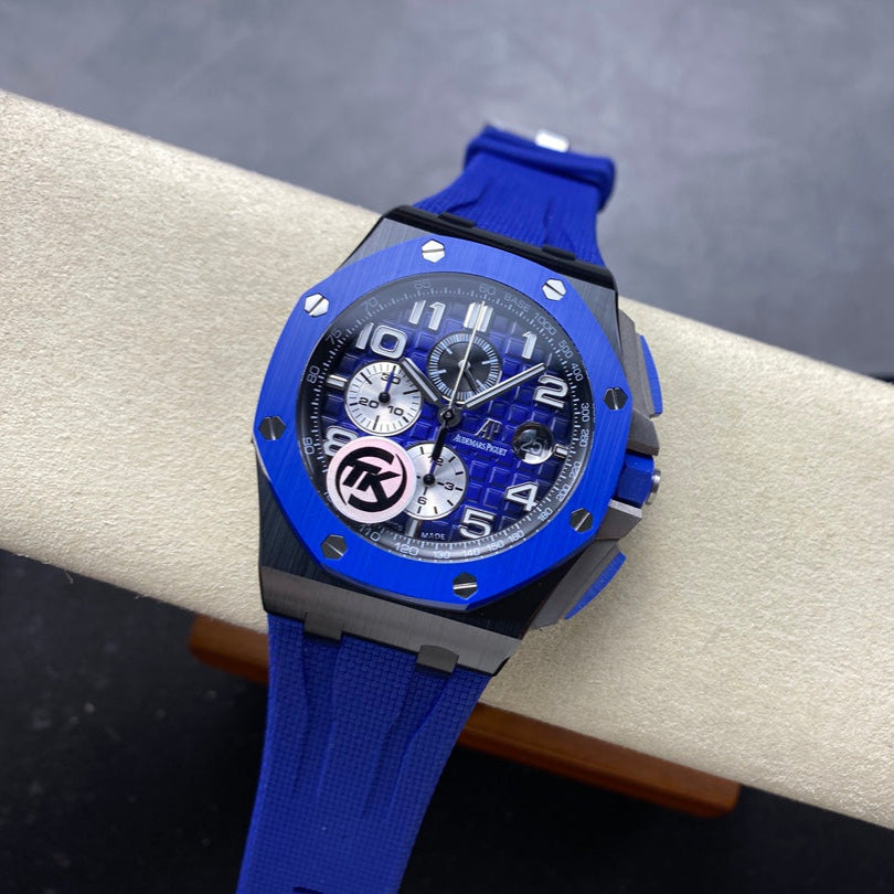 Royal Oak Offshore 44mm Black Ceramic TKF 1:1 Best Edition Blue Dial on Blue Rubber Strap A3126