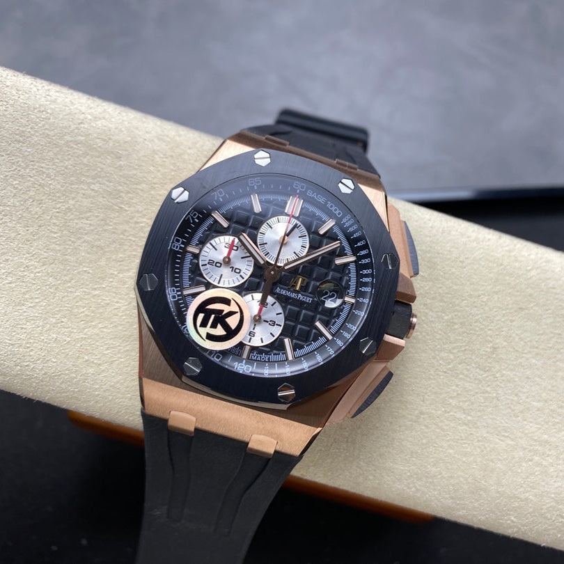 Royal Oak Offshore 44mm RG TKF Best Edition Black/Silver Dial Ceramic Bezel on Black Rubber Strap A3126