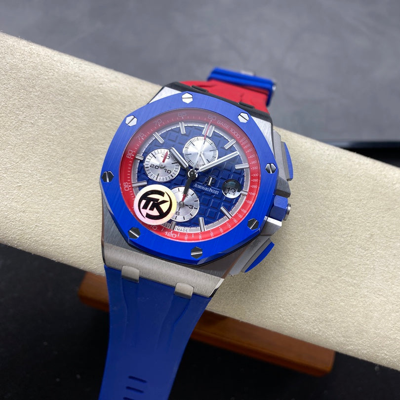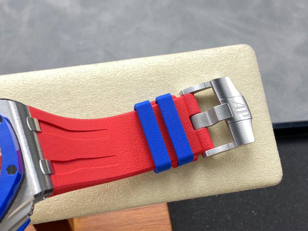 Royal Oak Offshore 44mm SS TKF 1:1 Best Edition Blue/Red Dial on Blue/Red Rubber Strap A3126
