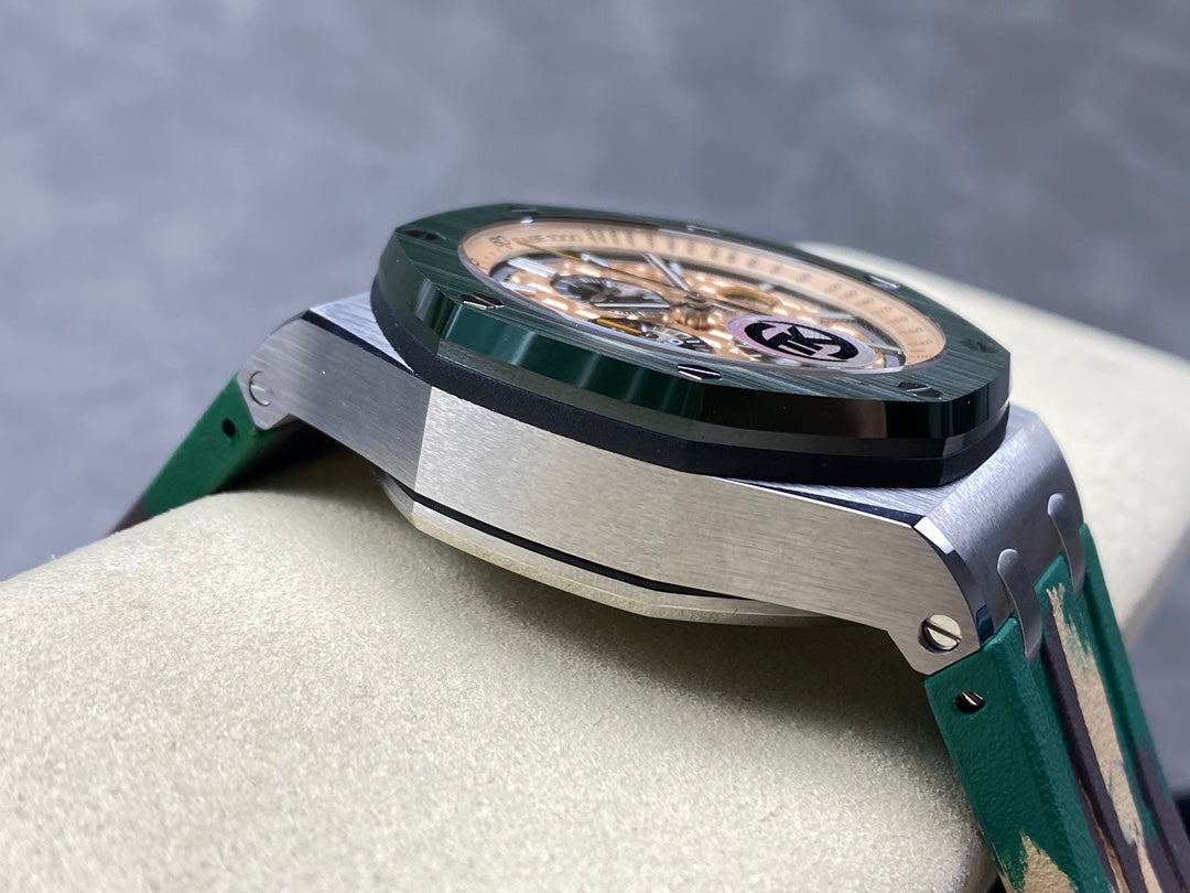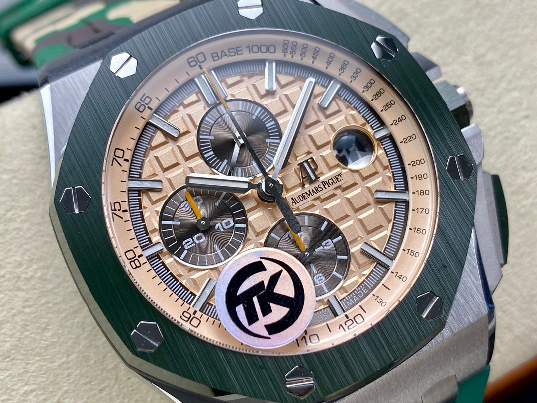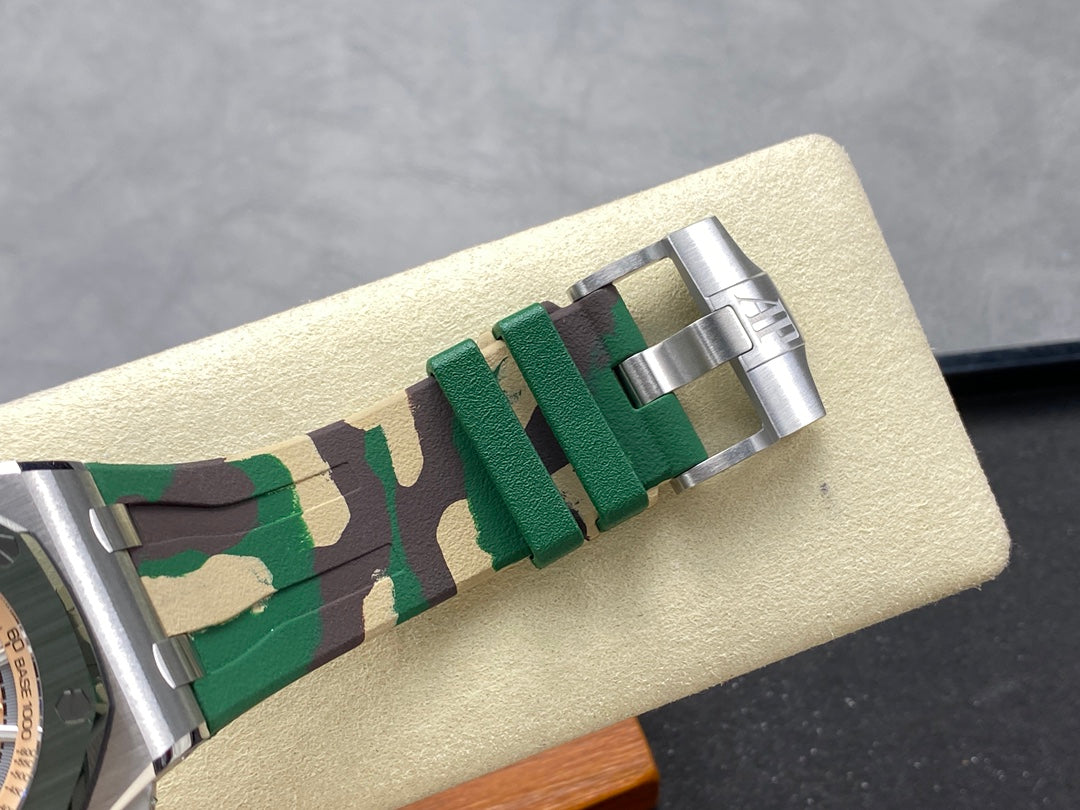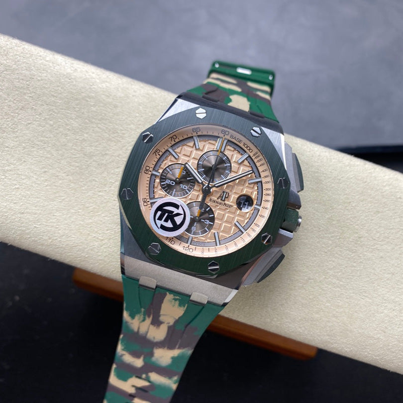 Royal Oak Offshore 44mm SS TKF 1:1 Best Edition Cream Dial on Green Camou Rubber Strap A3126