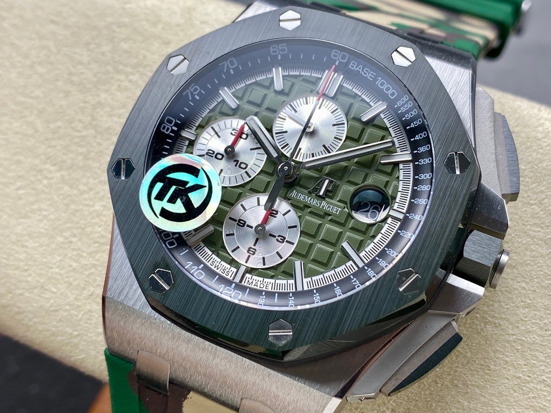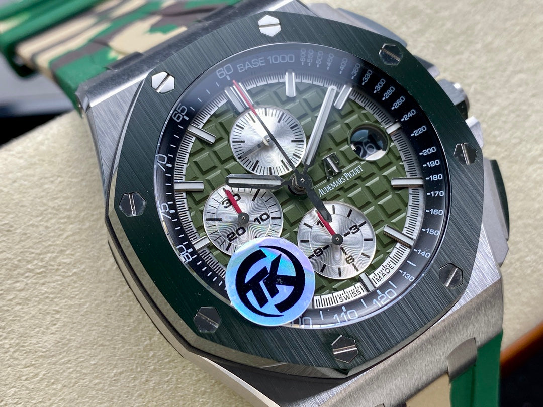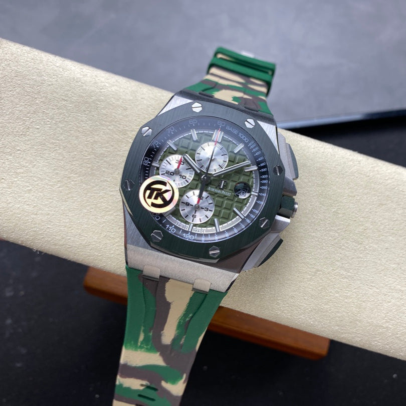 Royal Oak Offshore 44mm SS TKF 1:1 Best Edition Green Dial on Green Camou Rubber Strap A3126