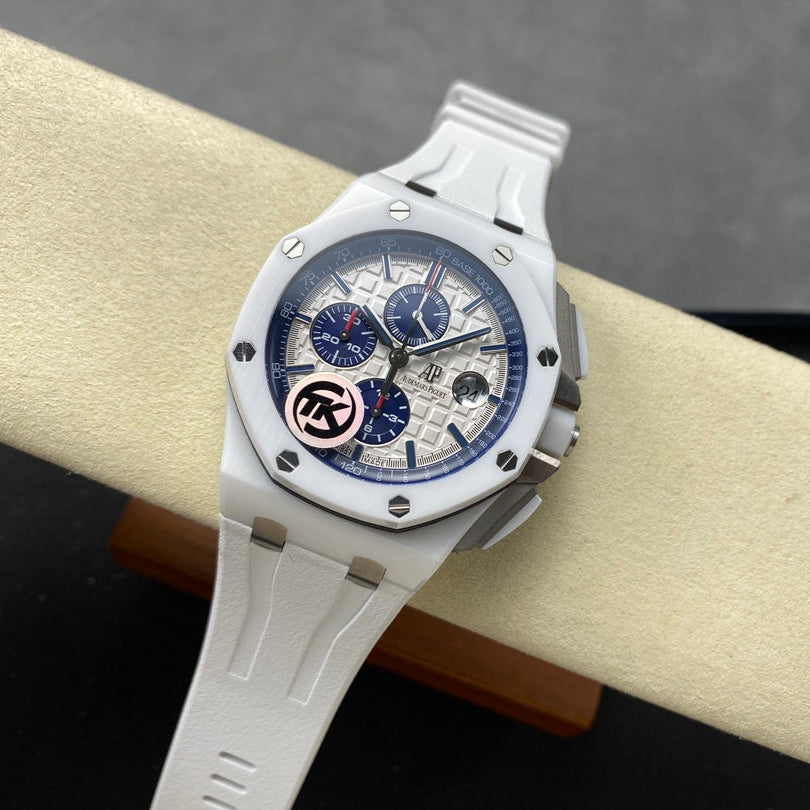 Royal Oak Offshore 44mm White Ceramic TKF 1:1 Best Edition White Dial on White Rubber Strap A3126