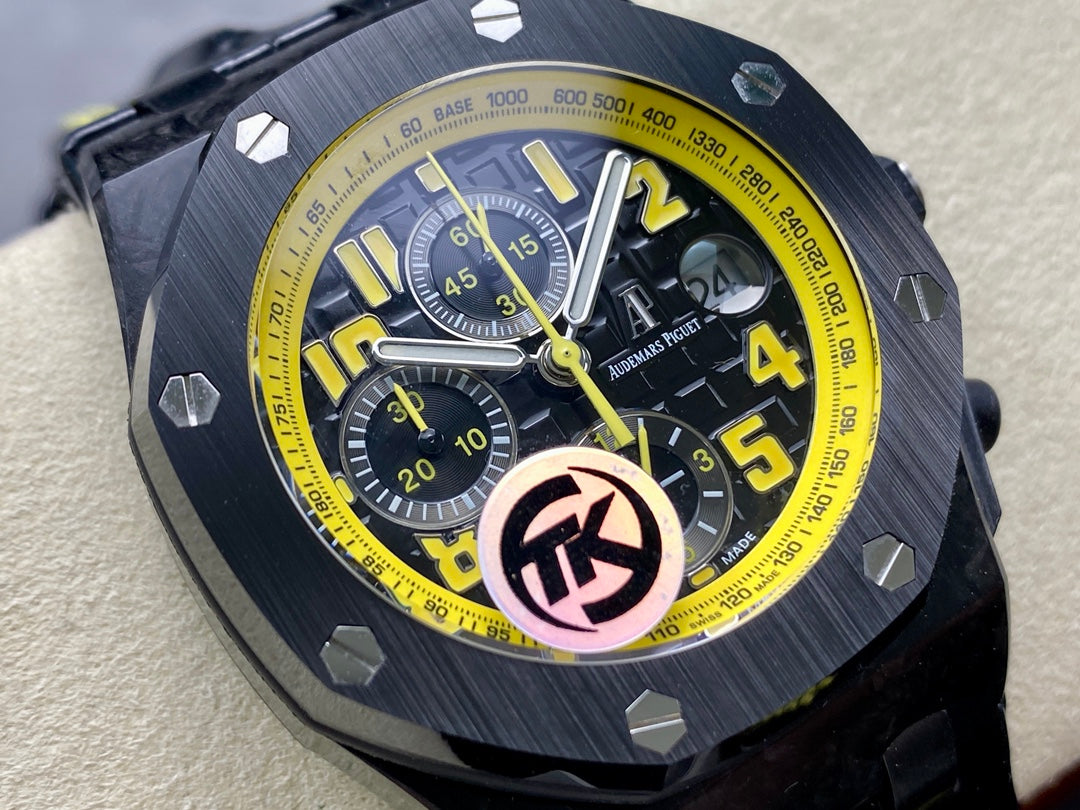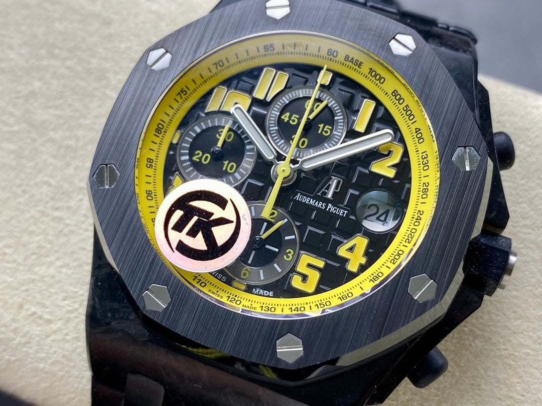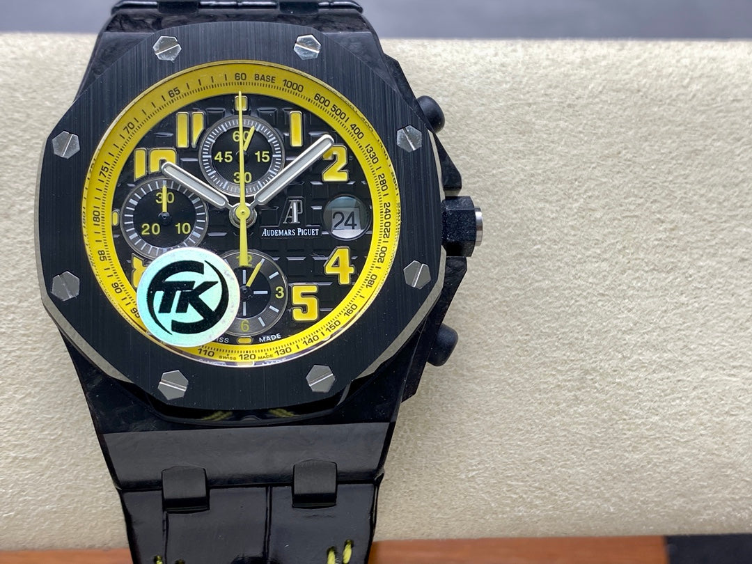 Royal Oak Offshore 'Bumble Bee' 42mm Ceramic Bezel SS TKF Best Edition Black Leather Strap A3126