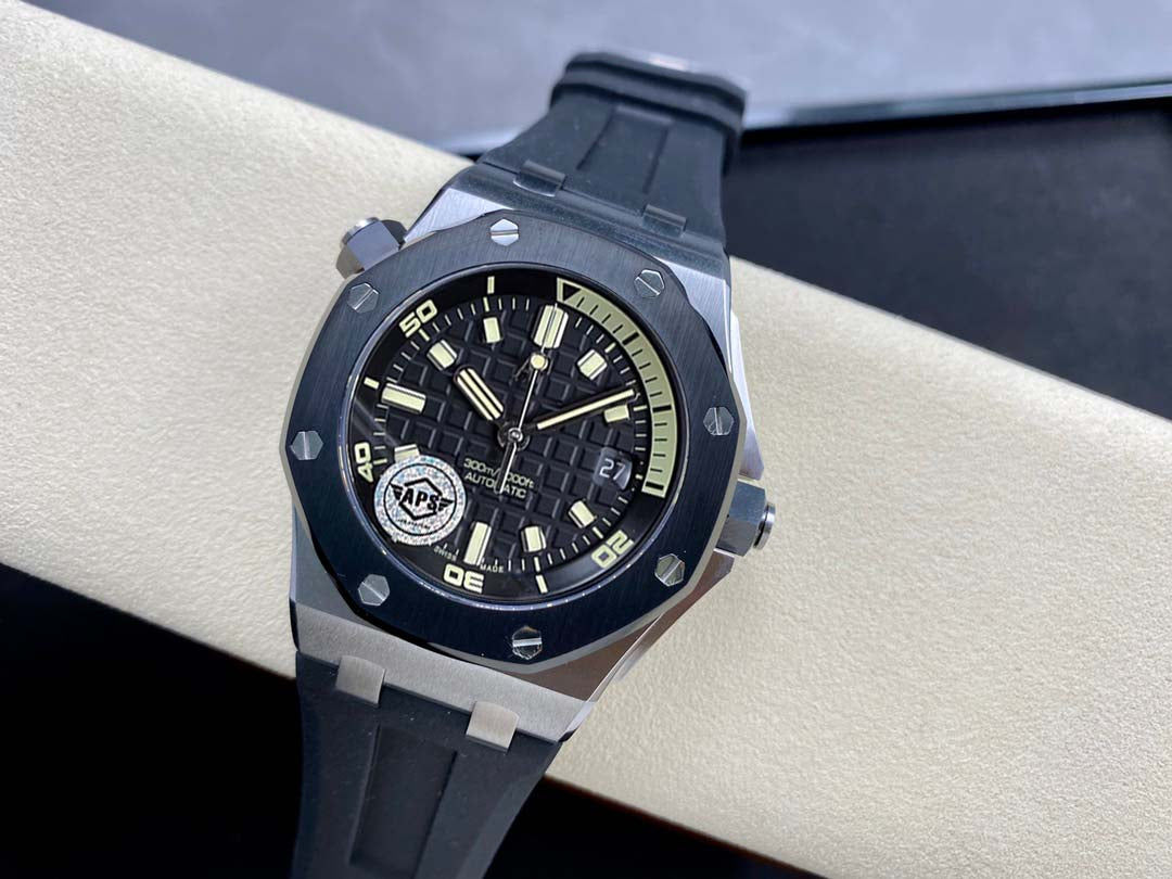 Royal Oak Offshore Diver 15720 SS APSF 1:1 Best Edition Black Dial Ceramic Bezel on Black Rubber Strap A4308 Super Clone